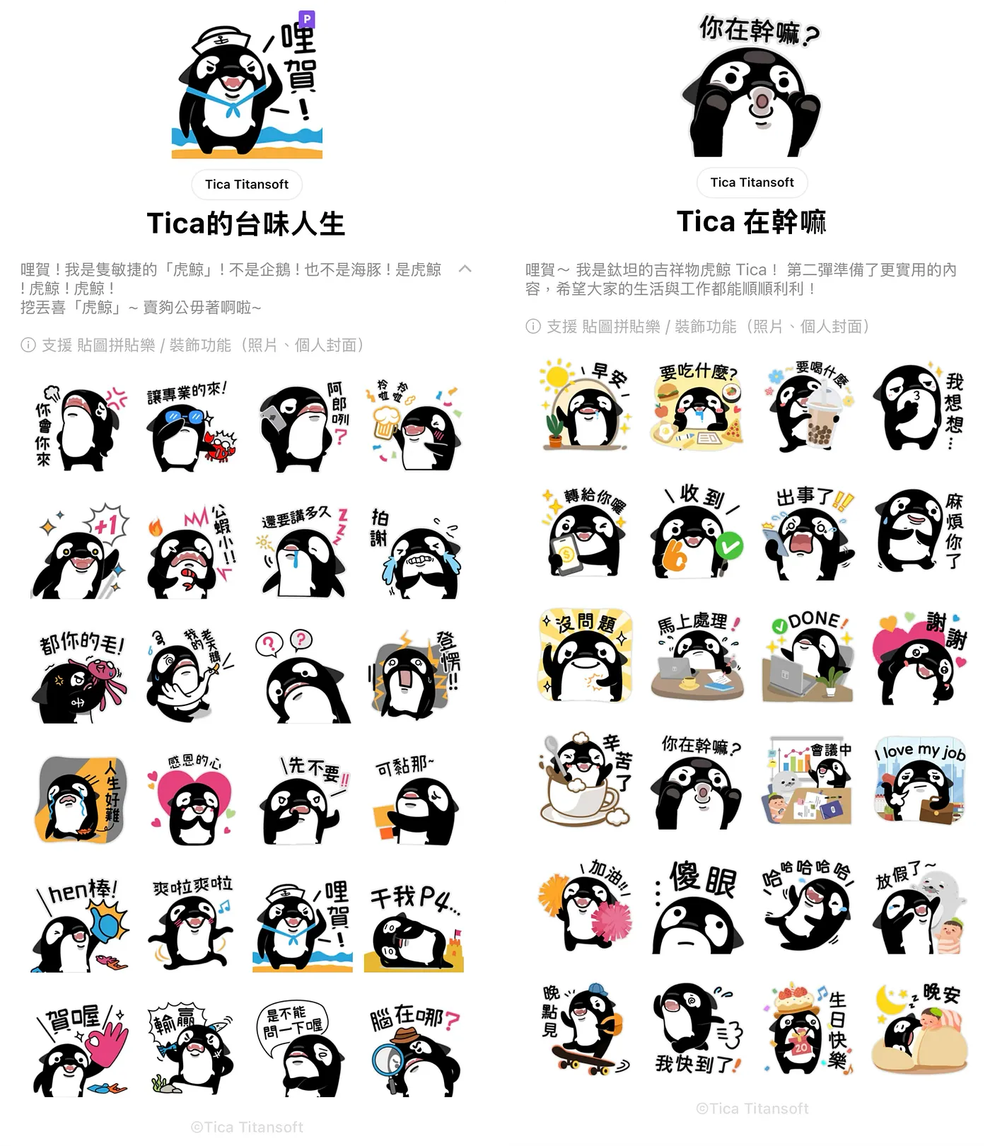 Tica 是鈦坦科技的吉祥物,虎鯨代表的是可以獨立作戰,也可以團隊合作,象徵的是我們對鈦坦人的期待。因此他不只是一個可愛的角色,而是鈦坦文化與價值的化身。